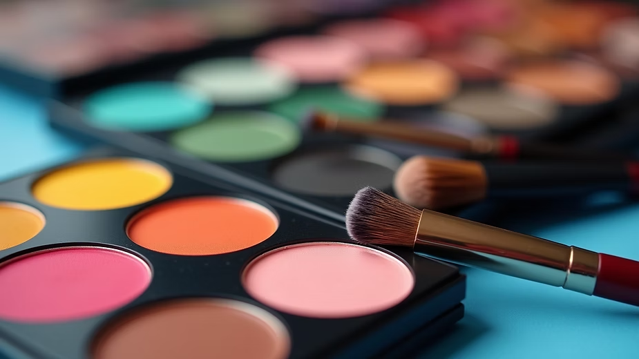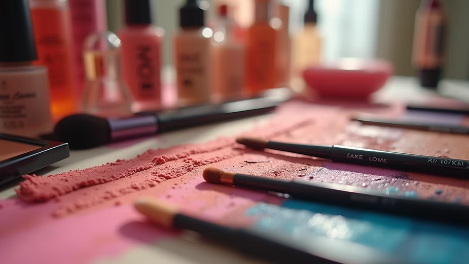 Vibrant makeup products on a vanity ready for application